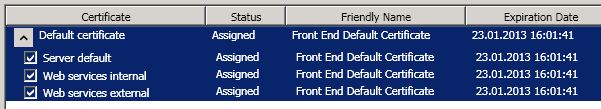 - По завершении процесса запроса сертификата назначаем его сервисам Lync